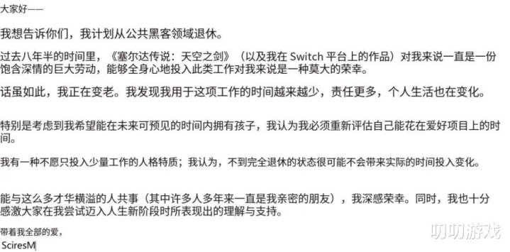 然后就是SciresM大神,为了回归家庭,宣布彻底退休,但不排除有其他大神接手开发。